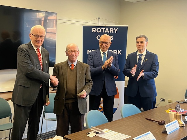 Then Chair of Trustees Gerard Schriffen presented a $25,000 to Bob Terry from St. Francis College to help homeless students with their tuition. The need for mentors was mentioned as well thus the opportunity for Rotarians to serve. Mr. Terry stated that he too was a Rotarians in the past in California and thanked our Foundation.